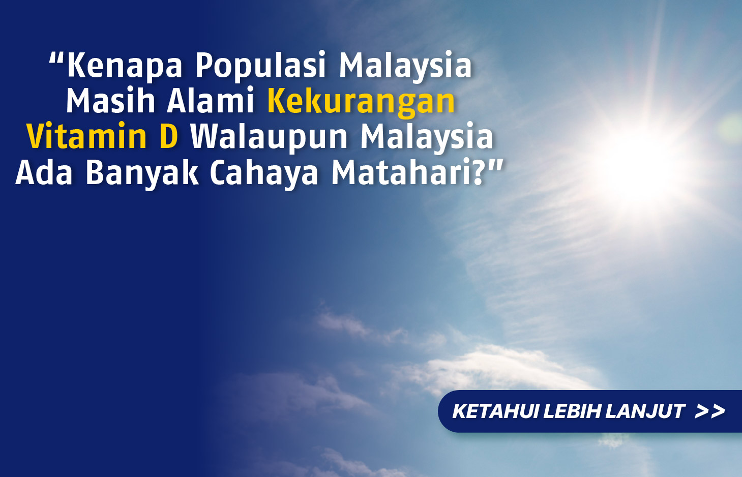 Tahukah anda, bahawa masalah kekurangan vitamin D adalah suatu masalah yang biasa dalam kalangan rakyat Malaysia? Keadaan ini agak mengejutkan